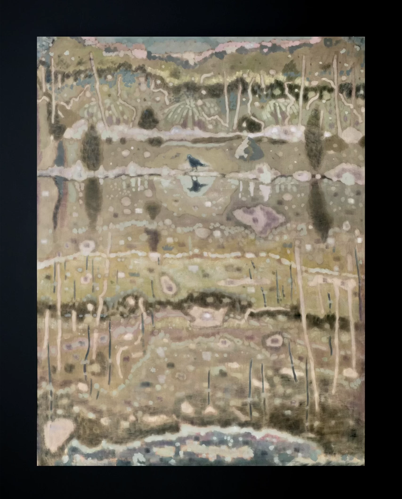 Trong thế giới của Hoàng Hải, bóng đổ và mặt nước – dù là hồ, đầm lầy hay những dòng sông – đều mang một đặc tính phản chiếu tương đồng: chúng khơi gợi những câu hỏi và gieo rắc sự hoài nghi thay vì soi chiếu chủ thể một cách xác thực. Nghệ sỹ chiêm nghiệm: “Những bề mặt phản chiếu có khả năng đánh lừa bạn. […] Càng ngắm nhìn [mặt nước], ta càng thấy nó dường như chẳng mang một ý nghĩa nào. Vì vậy, có lẽ trong cuộc triển lãm này, tôi muốn mang lại cảm giác không chắc chắn, không biết đâu là thực, đâu là hư”.