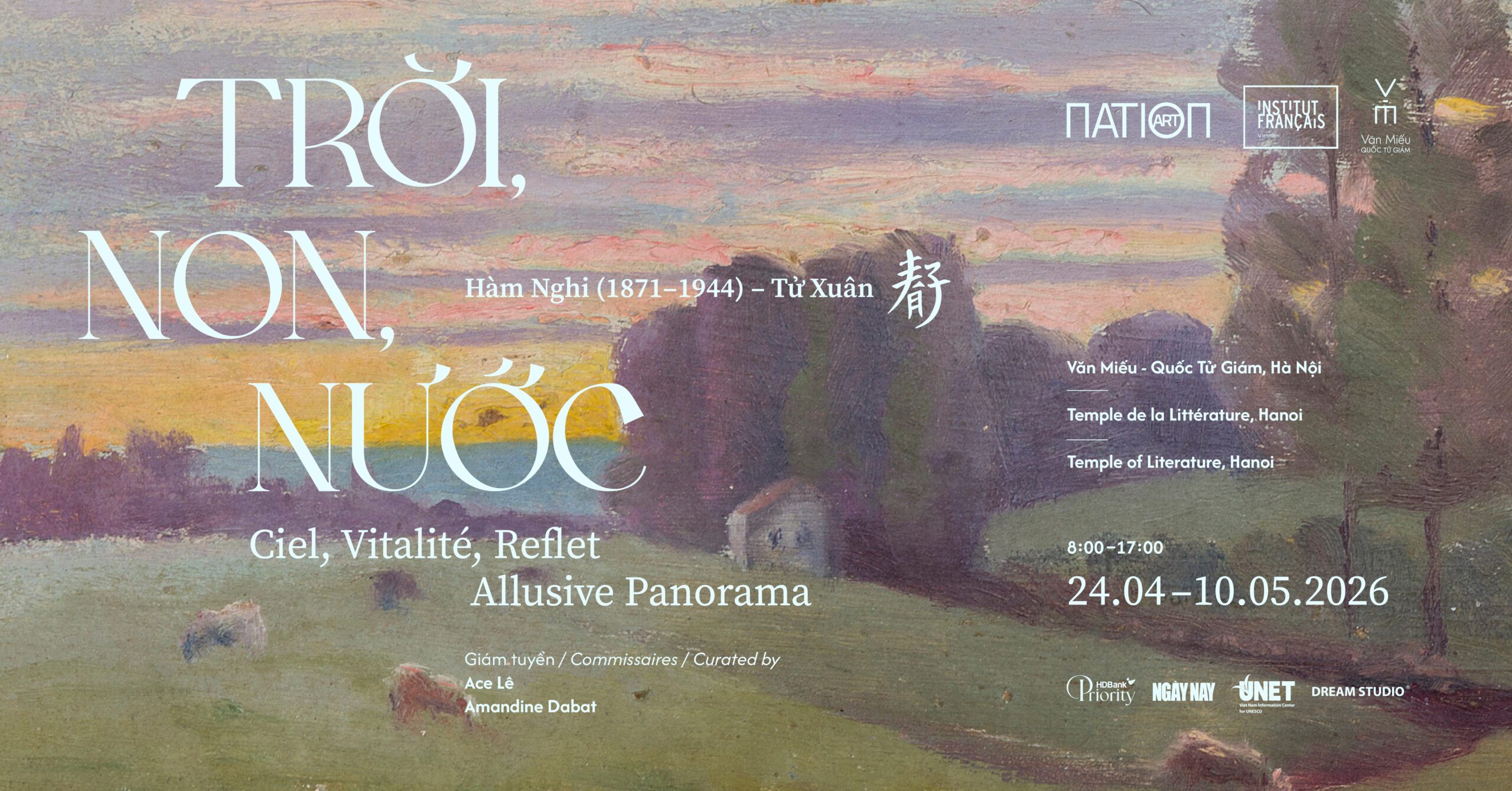 Art Nation trân trọng giới thiệu “Trời, Non, Nước | Allusive Panorama” – triển lãm phi thương mại quy tụ các tác phẩm hội họa tiêu biểu của vua Hàm Nghi tại Hà Nội. Diễn ra tại Văn Miếu – Quốc Tử Giám từ ngày 24.04.2026, sự kiện được đồng giám tuyển bởi nhà nghiên cứu mỹ thuật Ace Lê – Editor-in-Chief của Art Nation cùng Tiến sỹ Amandine Dabat – hậu duệ đời thứ 5 của vua Hàm Nghi. Sự kiện là chặng thứ hai của chuỗi triển lãm mỹ thuật Hàm Nghi với sự phối hợp của Viện Pháp tại Việt Nam và Văn Miếu – Quốc Tử Giám.