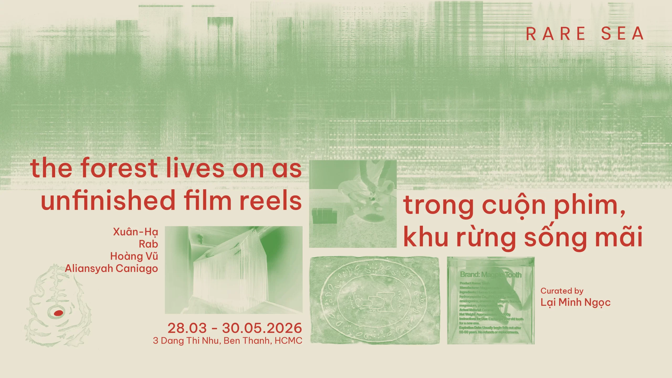 Rare Sea trân trọng giới thiệu “trong cuộn phim, khu rừng sống mãi”, một trưng bày nhóm của bốn nghệ sỹ Aliansyah Caniago, Xuân-Hạ, Rab và Hoàng Vũ. Quy tụ các tác phẩm đa phương tiện, bao gồm điêu khắc, tranh lụa và giấy truyền thống Hàn Quốc, sắp đặt và hình ảnh động, trưng bày theo những hiện diện dai dẳng của vật chất và linh hồn như người dẫn chuyện về đô thị hóa, sản xuất và lao động trong xã hội hiện đại.