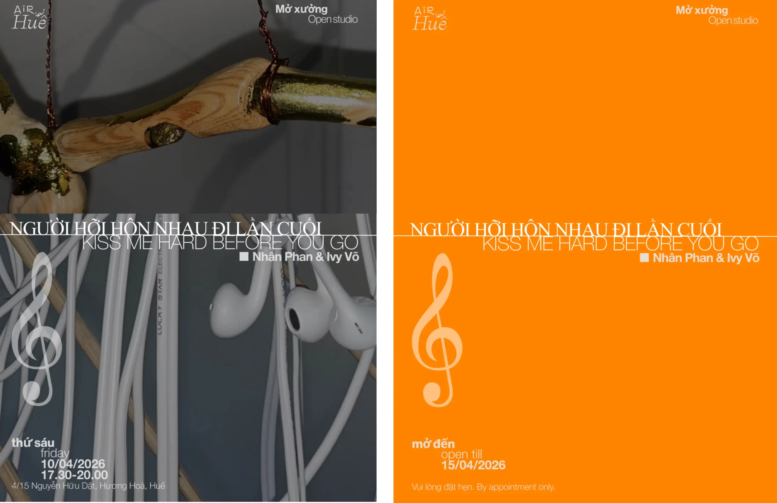 AirHue trân trọng giới thiệu mở xưởng “Người hỡi hôn nhau đi lần cuối” của hai nghệ sỹ Nhân Phan và Ivy Võ – thiết lập một tình huống hình dung về những sinh thể số – những sinh thể tồn tại cùng và chịu chi phối bởi kỹ nghệ.