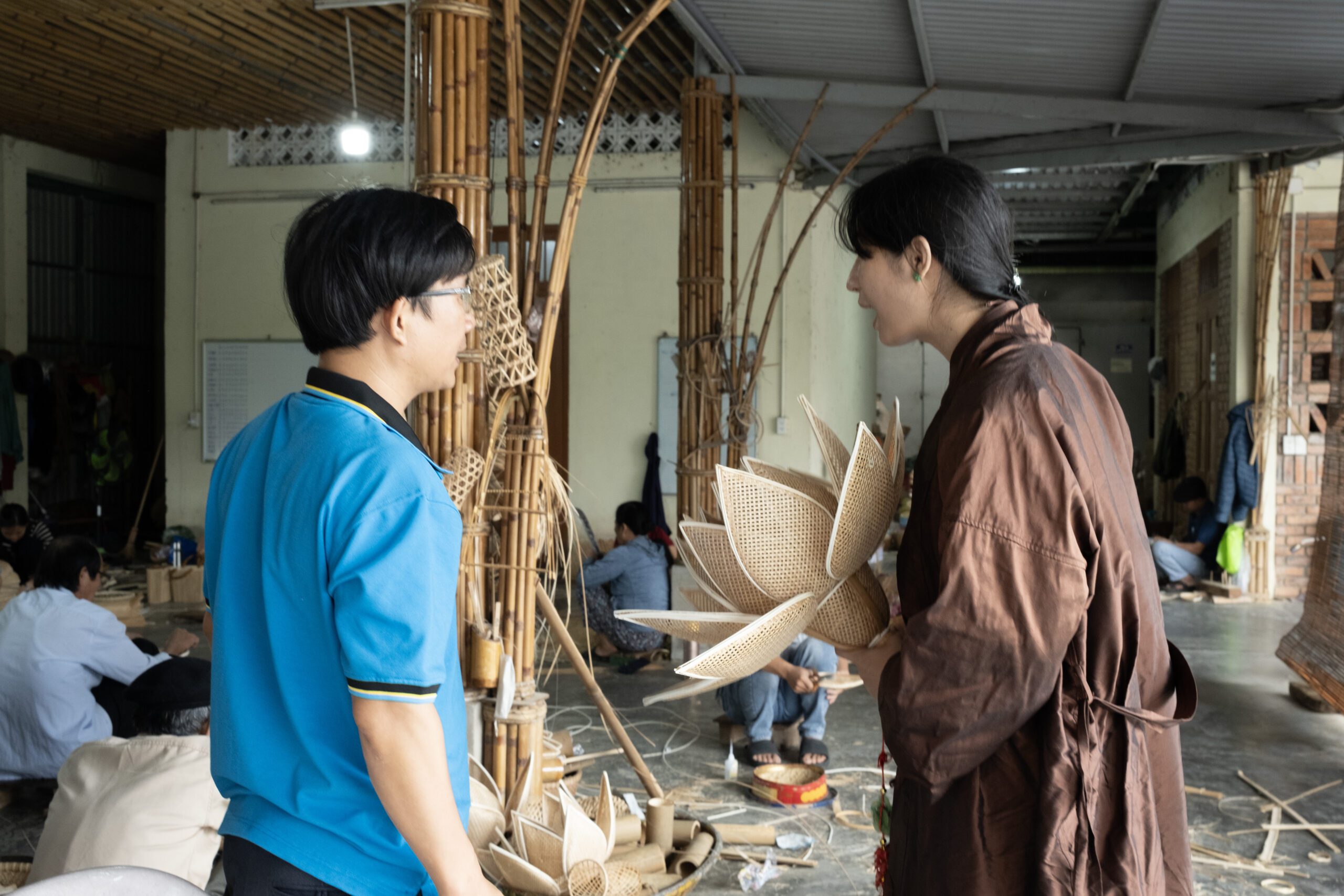 Nu: Surrounding AirHue’s current space are local artisans who make paper offerings, engrave calligraphy, craft bronze sculptures, and practice Trúc Chỉ art, to name a few. AirHue creates opportunities for artists to experiment by actively introducing and connecting them with these local artisans, so they can grow together and bring their ideas to life.