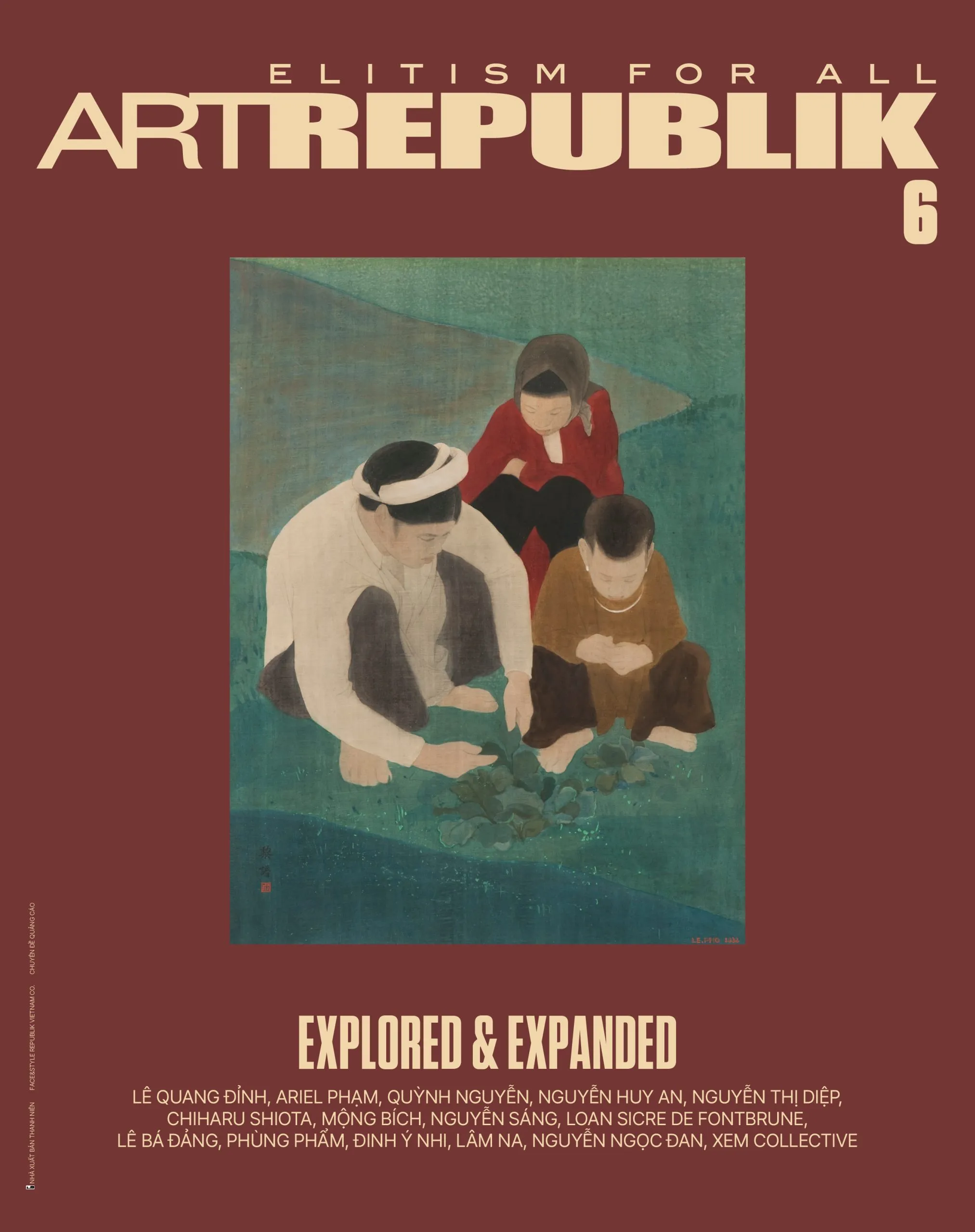 With the Feature section titled “Explored and Expanded”, Art Republik #6 diagnoses today’s contemporary art milieu under an economic angle with diverse perspectives on patronage, collecting, investing, trading and marketing. Besides aesthetic significance, economic activities have greatly influenced art’s historical courses. Twists and turns in both Vietnam, the region and the world’s art history have proven that in order to develop sustainably, both artists and art organisations need to be self-reliant in terms of both financial and human resources. Each individual and organisation needs to balance such needs with their own passion for art and commitment to social and community responsibilities to find their own path to grow and thrive. In this section, we converse with collectors Quynh Nguyen (Nguyen Art Foundation) and Ariel Pham (The Outpost), and artist duo Nguyen Huy An – Nguyen Thi Diep. Particularly meaningful now is our talk with artist Dinh Q. Le on his 15 years with San Art, a cardinal pillar of Vietnamese contemporary art. Our writer had an opportunity to meet him just a few weeks prior to his sudden passing. Our editorial team would like to dedicate a special cover as a tribute to Dinh Q. Le’s tireless and selfless contribution to the Vietnamese art community.