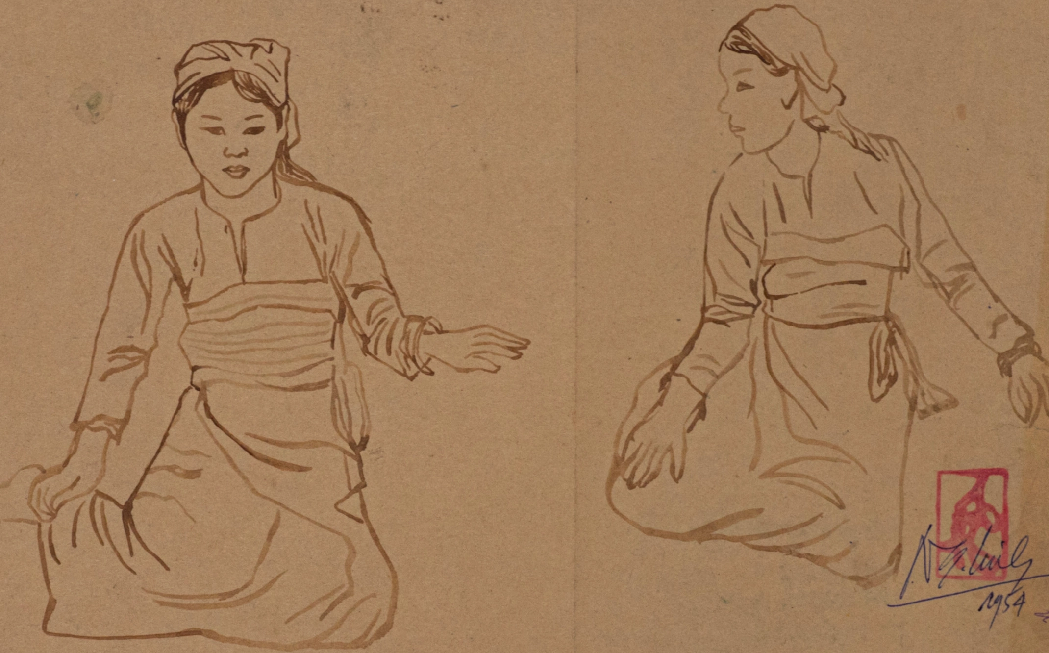 Because of the war, the school had to relocate constantly – from Tuyen Quang to Yen Binh to Phu Tho. The professors included Tran Van Can, To Ngoc Van, Nguyen Khang, Bui Trang Chuoc, Nguyen Sy Ngoc, Nguyen Van Ty, Nguyen Tu Nghiem. We all lived among the villagers and studied under stilt houses. We did not use formal titles – teachers and students treated each other like family members. Every week, there would be assignments in decoration, figure drawing and landscape. Bui Trang Chuoc mainly taught decorative drawing. All teachers were involved in figure drawing. Unlike EBAI, we did not draw nudes due to wartime conditions. Our model was Ms Hue, who had been To Ngoc Van’s regular model since before the war. She continued to model for us, alongside our supply officer Vung and even village elders like Mr Dao. Often, students took turns modeling for each other – Dao Duc drew Le Lam and vice versa. It was wartime, so we improvised. For field sketches, we would go out in groups after the morning flag raising ceremony, wandering into villages. The teachers would follow behind, sketching landscapes, reviewing our work and offering guidance. It was a lot of fun in our course. Aside from drawing, we also helped the locals with farming and milling. They loved us, and they would even save eggs just for us. The teachers were incredibly dedicated. Nguyen Tu Nghiem brought several books on European masters like Gauguin, Matisse all the way to the Resistance Zone to share with us. Dao Duc and Trong Kiem loved Gauguin, while Luu Cong Nhan preferred Monet.