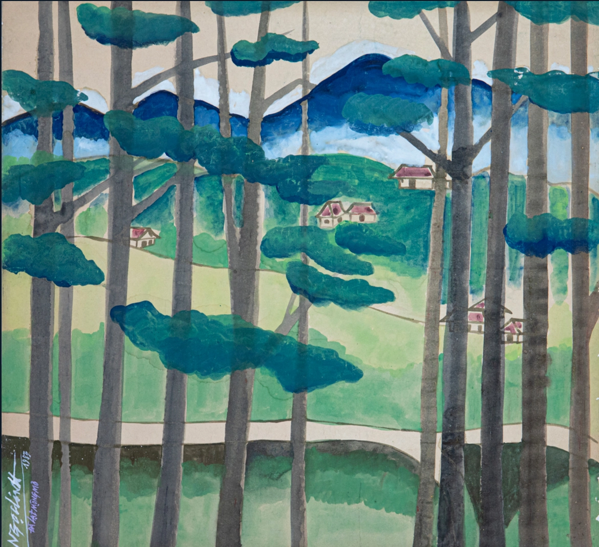 Initially, there were about 24 students; eventually, only 22 stayed. The government provided each student with 20 kilos of rice per month, and covered our food, tuition and art supplies. After a few months, the funding stopped, but I was so devoted to painting that I found ways to get by. I spent mornings in class and afternoons gathering firewood in the forest to trade with members of the Architecture Association – there were leading figures at that time like Nguyen Cao Luyen and Hoang Nhu Tiep – in exchange for rice, which I brought back to school for others as well. Some students dropped out due to financial hardship. Among the 22 students, only Thuc Phi and I had never received formal art training. Before the Revolution, I was with my brother-in-law Tung, and before that, I lived with my grandfather, Viceroy Vi Van Dinh, in Hanoi. In my childhood, I used to walk from Nguyen Du Street near Halais Lake to watch films at the August Cinema. After each film, I would ask for a program leaflet, trace the pictures, project them on the wall at night and practice drawing. Everyone in my family went into medicine or science, except me – I was the only one who took the art path. Only later did others in my family follow in my footsteps.