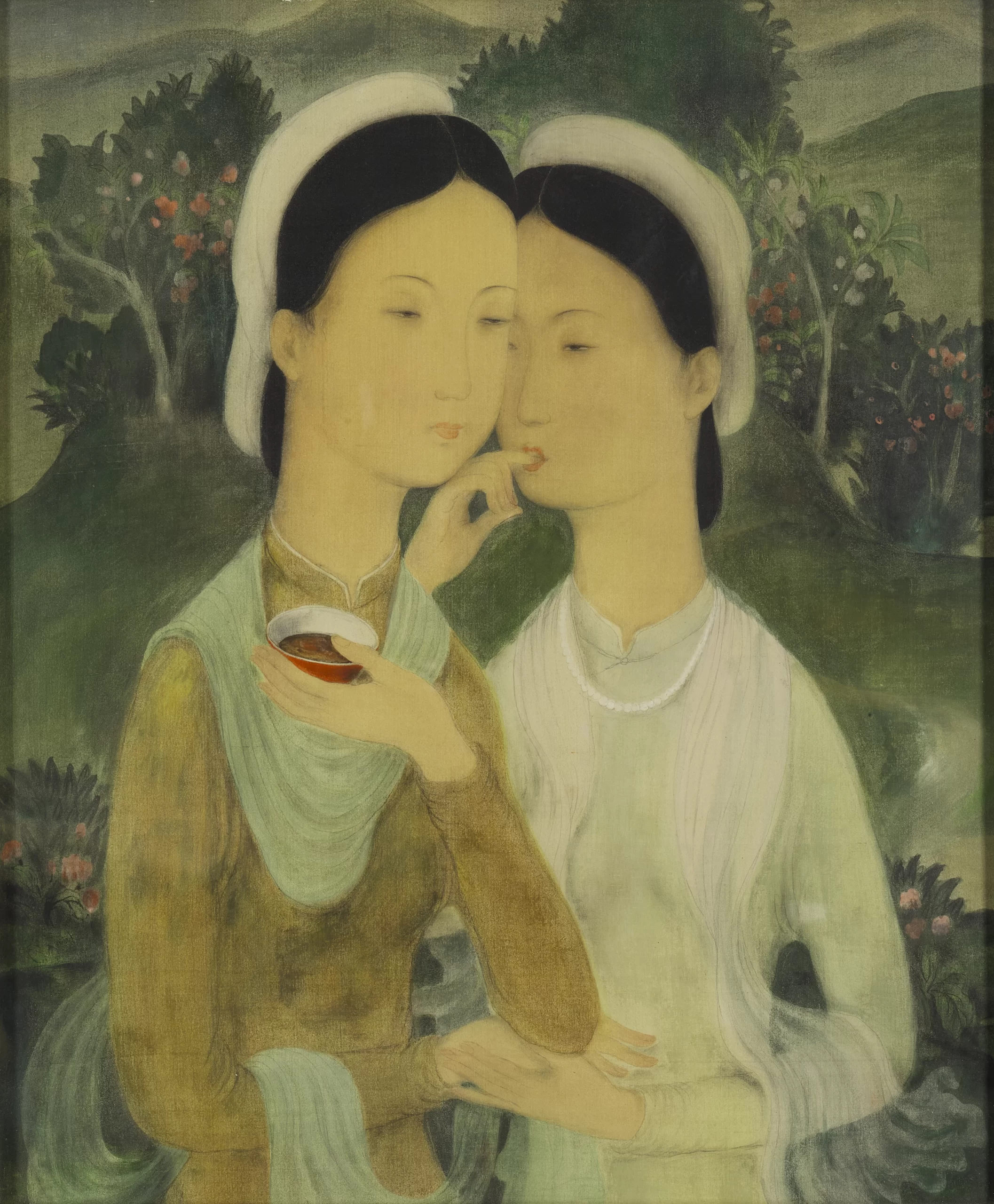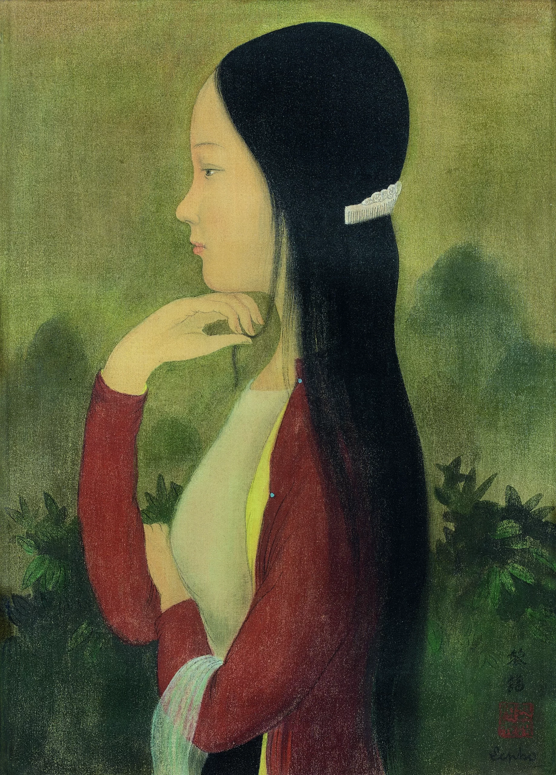 One of the key features of this exhibition is that it includes, side-by-side, artists from different parts of Asia – including China, Japan, Vietnam and other countries from across Asia – in a single exhibition. This allows us to really see what common experiences they had, as well as where the trajectories of different groups diverged. Something that we noticed very frequently, regarding artists from different parts of Asia who came to Paris, was that this experience did not necessarily make their works look more “French”. In fact, for many artists, this was the period when the Asian aesthetics in their artwork intensified, as they began to reassess their heritage with the new perspective given by distance. This happened for a number of reasons: both the desire to create a new, distinctive form of modern art based on their own cultural references, as well as the expectations of the audience in Paris about Asian art. A great example is the experience of the Vietnamese artists Le Pho, Mai Trung Thu and Vu Cao Dam, who migrated to Paris in the 1930s. After migrating, their work focused much more intensively in painting on silk, with a very romantic, idealised depiction of Vietnam.