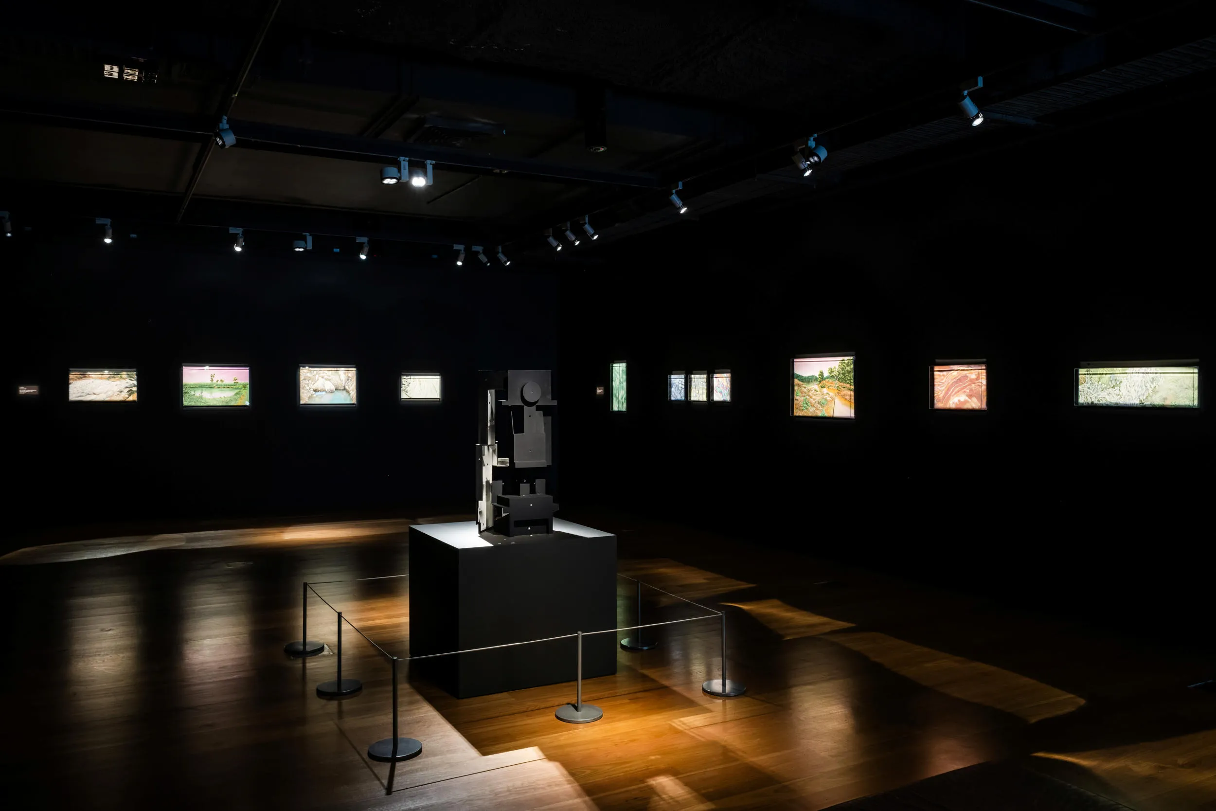 In-person curatorial travel and research is a crucial element of the APT, and artist selection occurs in advance to allow new works to be developed and loans to be facilitated. In November 2022, I began my APT11 research travel to Vietnam, visiting Truong Cong Tung in his studio on the outskirts of Ho Chi Minh City. Tung combines his training in lacquer painting with a keen interest in science, ecology and cosmology, melding elements resonant of nature and culture. His practice is influenced by his upbringing in Dak Lak province and his ongoing relationship with the indigenous Jrai people from the Central Highlands of Vietnam, whose customary beliefs are grounded in place. Tung works with a range of media, including installation, sound and found objects, to reflect on, in his words, “the cultural and geopolitical shifts of modernisation, as embodied in the morphing ecology, beliefs or mythology of a land.”