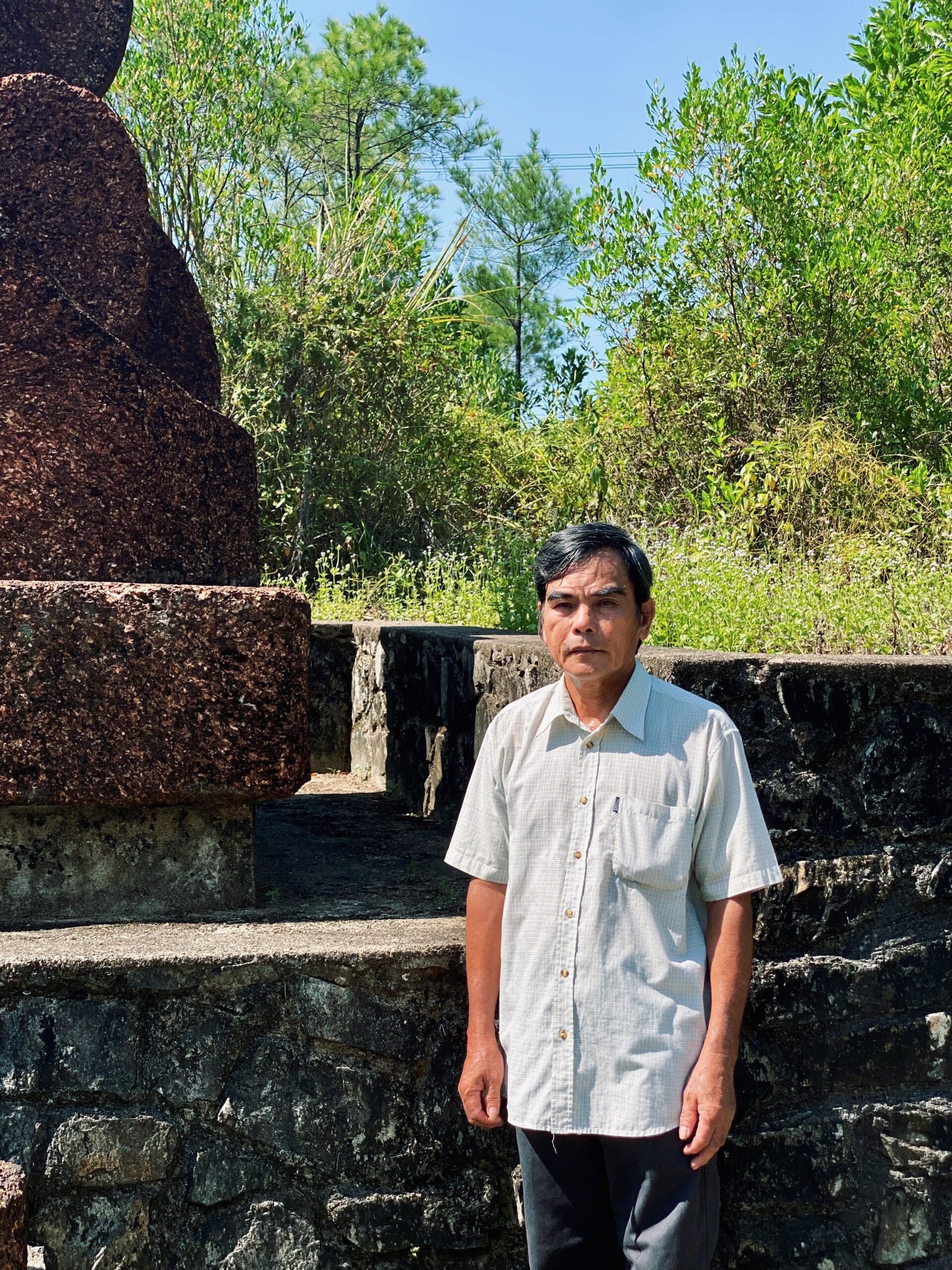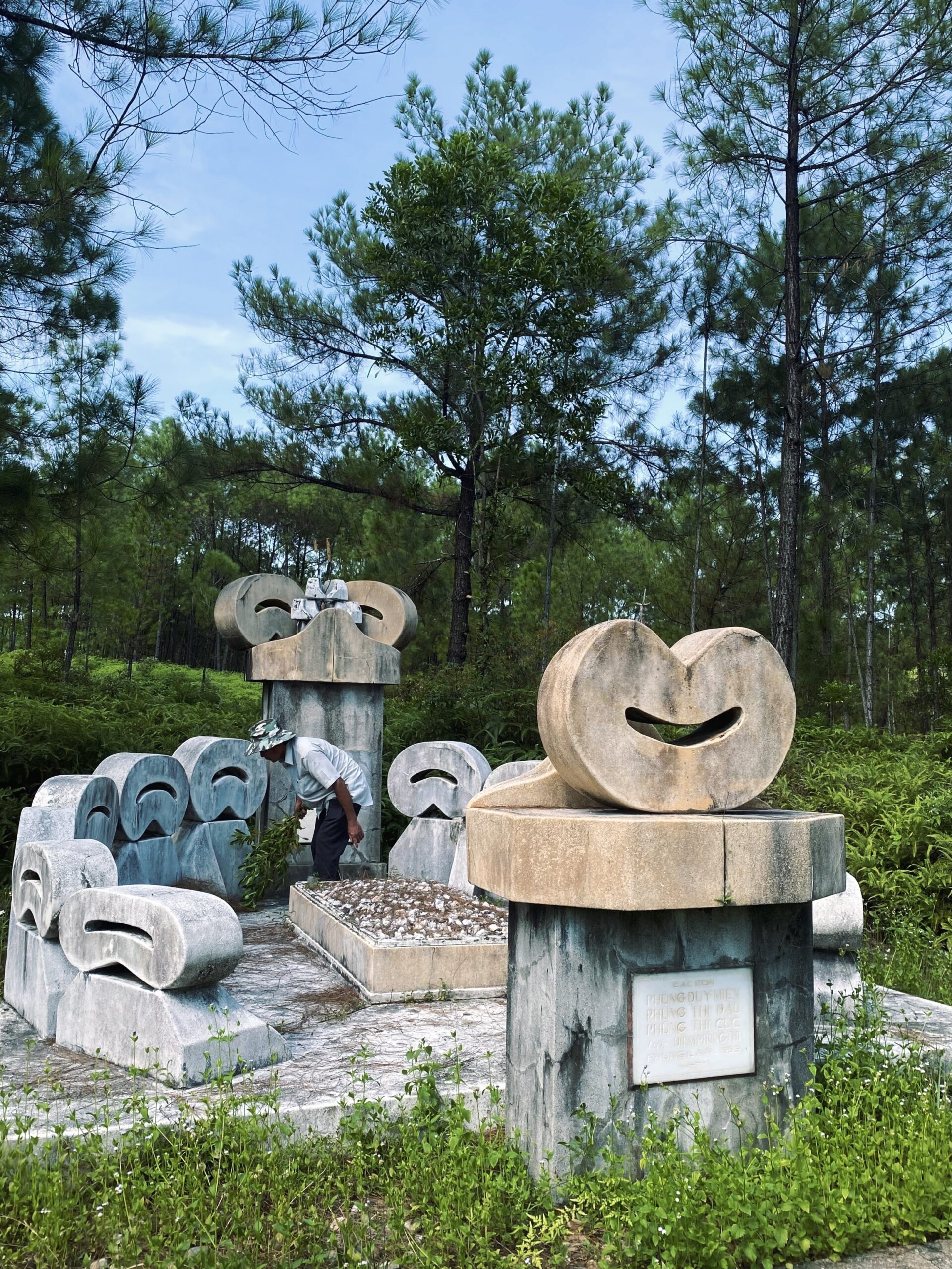 Under the sultry sun and gentle breeze of midday, uncle Thuyen diligently gathered fallen pine branches from the gravesite. “It’s the pine-shedding season.” He said with a profound understanding of nature, stemming from nearly three decades of picking up pine cones on those graves. I was grateful to meet him, the caretaker of Diem Phung Thi, her husband and her mother’s graves.