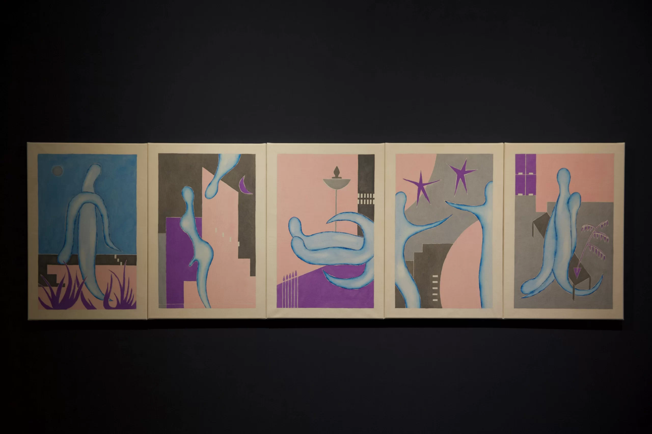 Upon entering the exhibition, visitors are immersed in the sounds of queer culture in Southeast Asia through the soundscape installation “I Dreamed of Sounds and Saw Us Intertwined” (2024) by DJ-artist shasti (Indonesia). Blending the pulsating energy of a dance club with the ethereal presence of spirits, the piece is both sacred and dreamlike, evoking a sense of entanglement between worlds. The exhibition design draws inspiration from the mandala, a symbol of cosmic order and harmony that has existed in the region since pre-colonial times. Exhibition texts are available in English, German, Thai and Vietnamese, inviting visitors to explore “Young birds from strange mountains” from multiple perspectives. The display follows a fluid, non-linear path, reflecting the interconnected themes of the artworks.