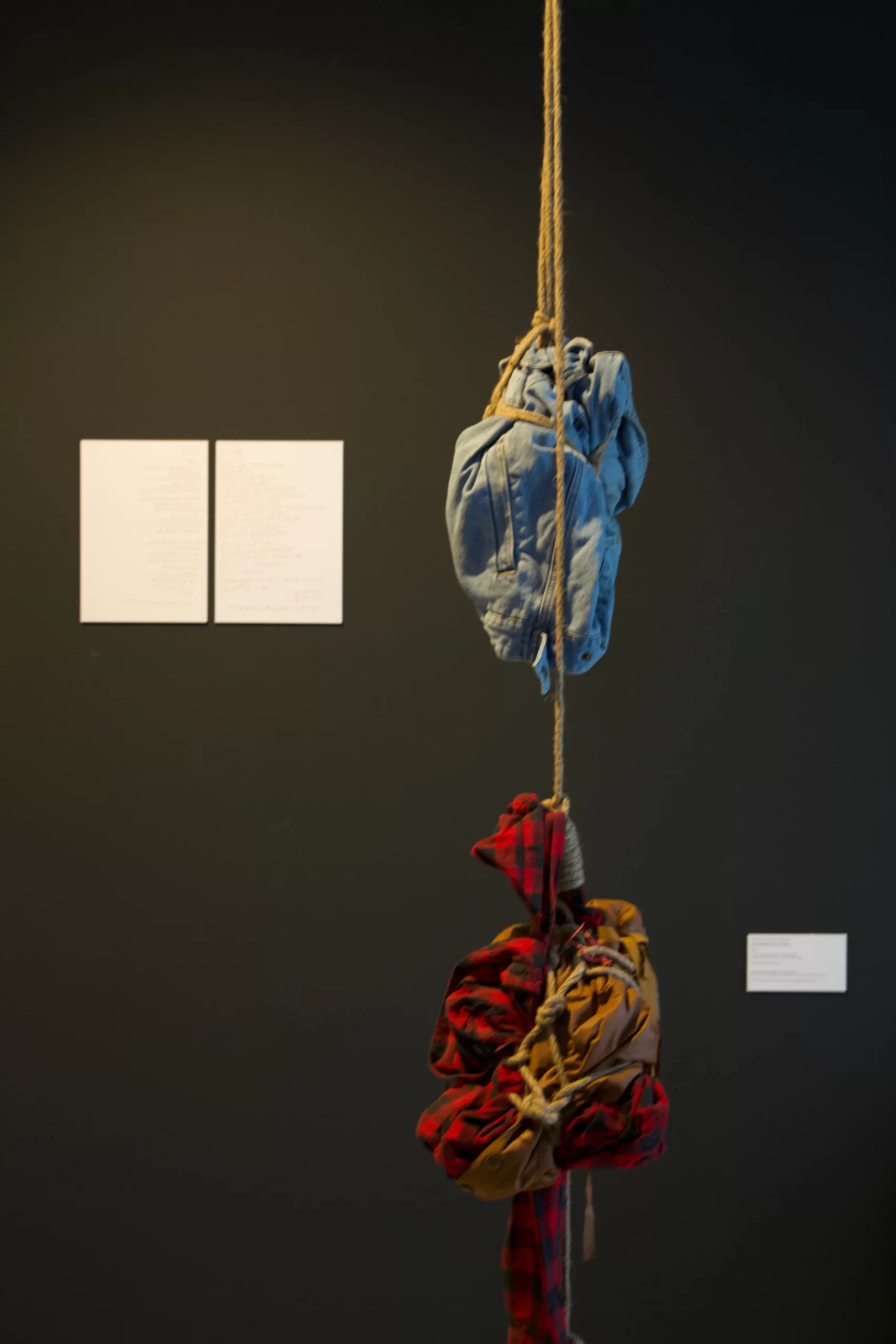 Grieving the death of his father, Oat Montien (Bangkok) created the multimedia installations “American dream revisited“ (2024) and “Untie (Death Valley)” by which consist of a rope tied to his father’s cowboy vetements, a video of Asian cowboys in the middle of a desert, and a farewell letter the artist wrote to his father, “So I did all of this, just to be able to say goodbye to you, Pa.”