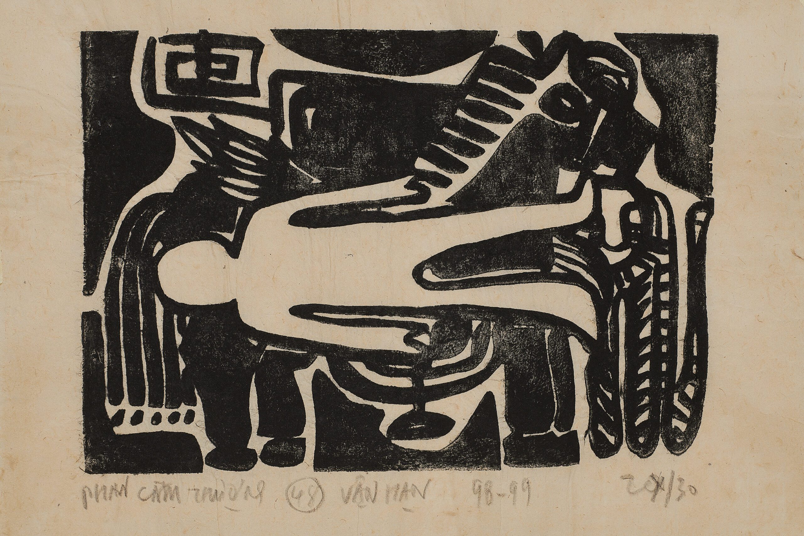 Ông vừa là một nhà nghiên cứu-phê bình, vừa là một hoạ sỹ với các thực hành thấm đẫm căn tính Việt và bản sắc phương Đông. Trong đó, loạt khắc gỗ 60 bức bằng mực than tre trên giấy “Một vòng hoa giáp” (1998–1999) là một bộ tác phẩm đồ sộ và tiêu biểu. Xin ông chia sẻ về hoàn cảnh sáng tác và ngôn ngữ biểu đạt của tác phẩm này.