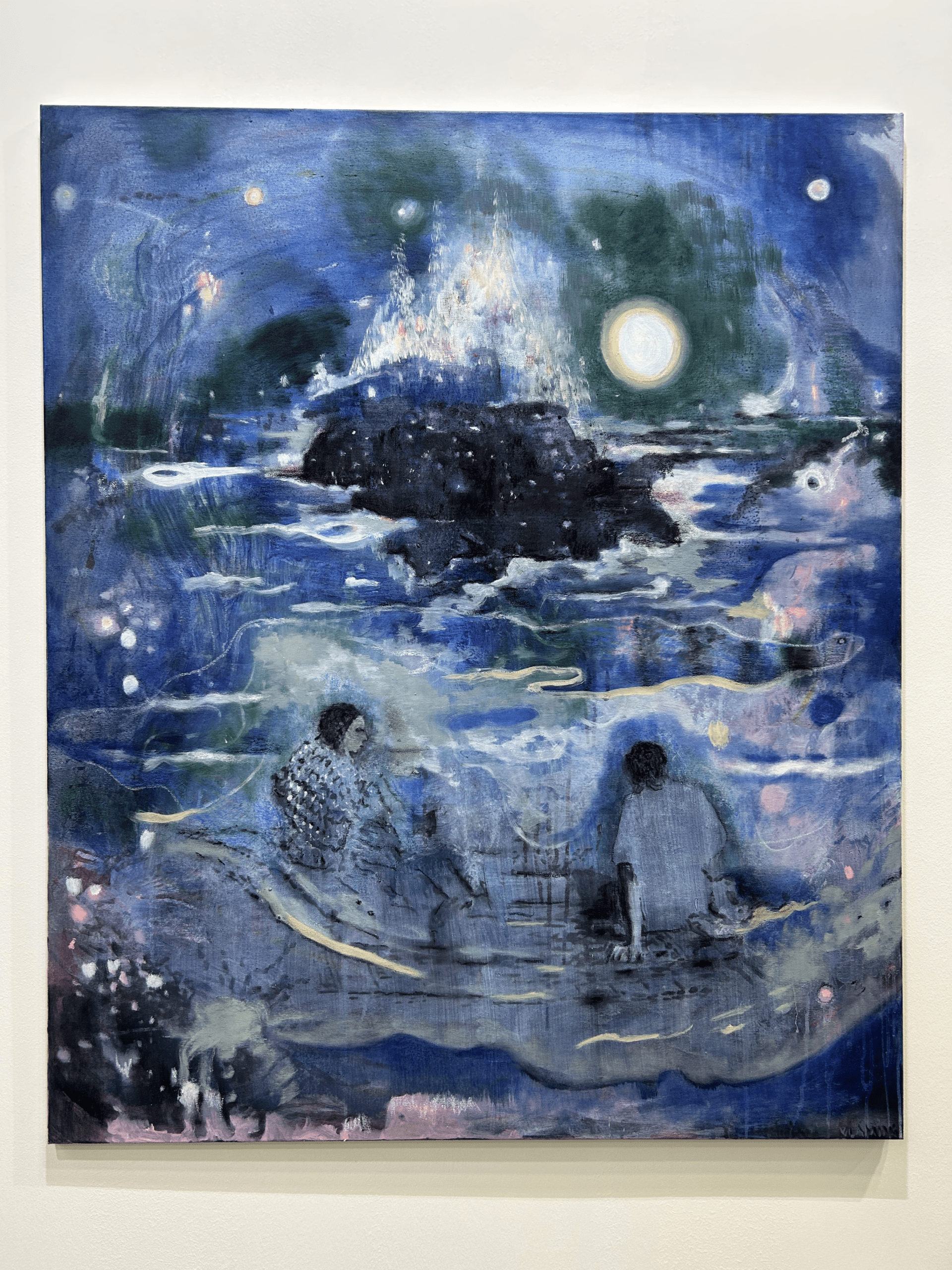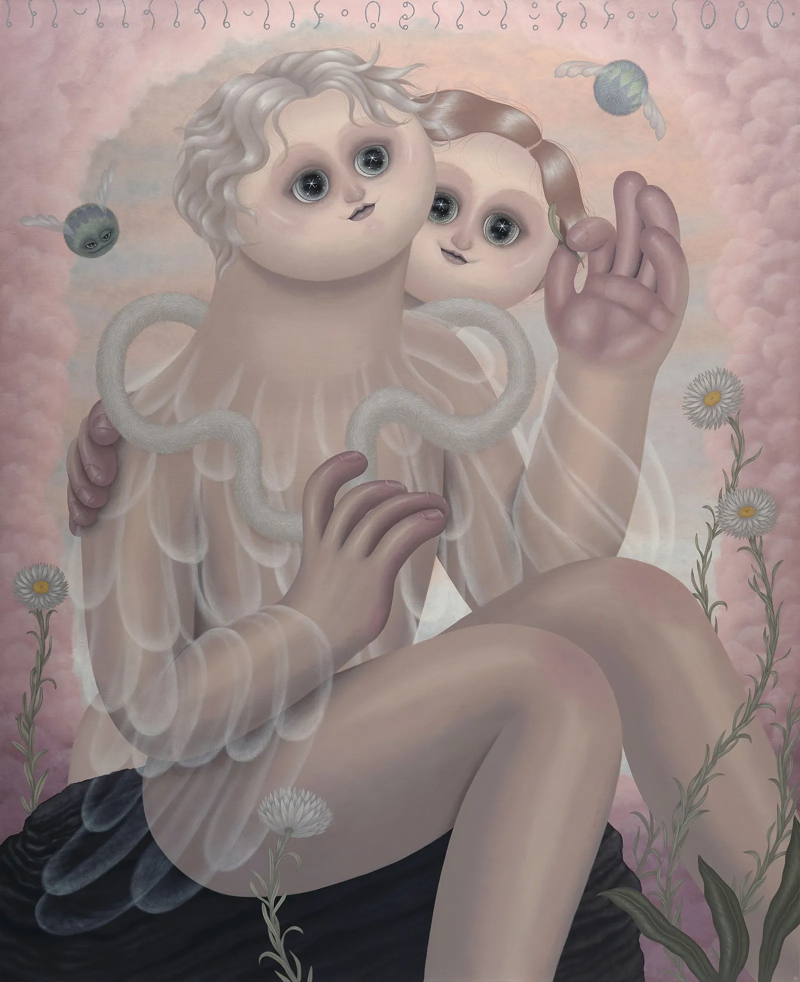 Vẫn tại Tang Contemporary, một sắc thái cảm xúc dịu dàng hơn hiện diện qua những tác phẩm của nữ họa sỹ Hàn Quốc Diren Lee. Cô nổi danh với những nhân vật có đôi mắt to sâu thẳm, kết hợp giữa người và động vật để phản ánh sự tổn thương trong môi trường đô thị. Tranh của cô là tấm gương phản chiếu khao khát yêu thương; trong đó “Ánh Sáng và hương thơm (Radiance and Aroma)” mang đến một không gian chữa lành, nơi những nỗi buồn cũng có thể tỏa hương.