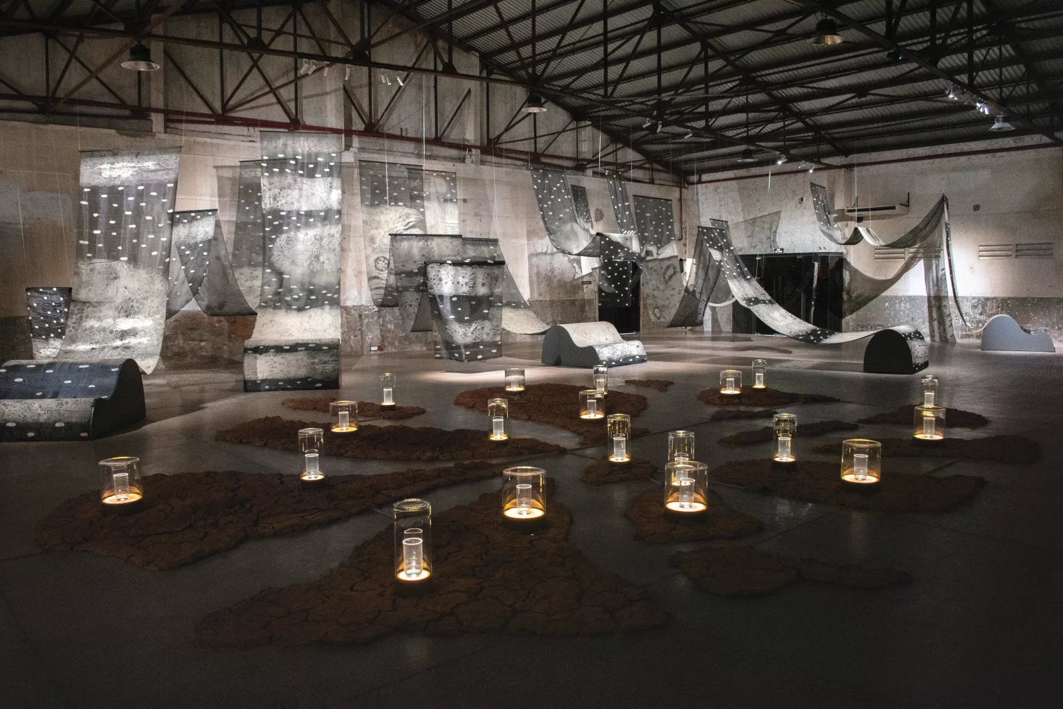 Sau tàn lụi, sinh thể (đã từng) sống trở thành “thể lặng của chốn vô cùng” (organs of the infinite). Các tấm vải đen thêu vàng trúc chỉ căng dài, uốn lượn nuốt trọn không gian. Trên màu đen đặc của vải đen, hay “chốn vô cùng”, trăm nghìn thớ ánh sáng kết tủa lại thành hình các tế bào riêng lẻ, rồi co cụm lại để biến đổi thành bộ phận cơ thể người. Không khó để nhìn thấy chủ đích lựa chọn tế bào như là biểu tượng nghệ thuật đặt để vào điểm đầu trong hành trình tái thiết của Ngô Đình Bảo Châu. Các sinh thể đơn bào là dạng tồn tại cơ bản và nguyên thủy nhất, hơn bất kỳ tồn tại hữu cơ nào khác, chúng mang sức sống bền bỉ và mãnh liệt. Trong hư vô, các tế bào thinh lặng, được phóng to kích cỡ đến to bằng tay người, chúng hấp thụ và phản chiếu ánh sáng. Nhưng ta suy ngẫm: chốn hư vô ấy là trạng thái sơ nguyên trước khi sự sống bước vào trần thế, hay quang cảnh hậu hủy diệt khi đã rời khỏi cõi tạm? Câu trả lời có lẽ là cả hai. Dẫu là trước hay sau vòng đời thì nhân loại cũng đều trôi đi bên trong hư vô. Do đó, tồn tại giữa các vòng lặp luân hồi, “chốn vô cùng” của Ngô Đình Bảo Châu vừa là kết quả, vừa là nền tảng của cuộc hủy diệt-tái thiết.