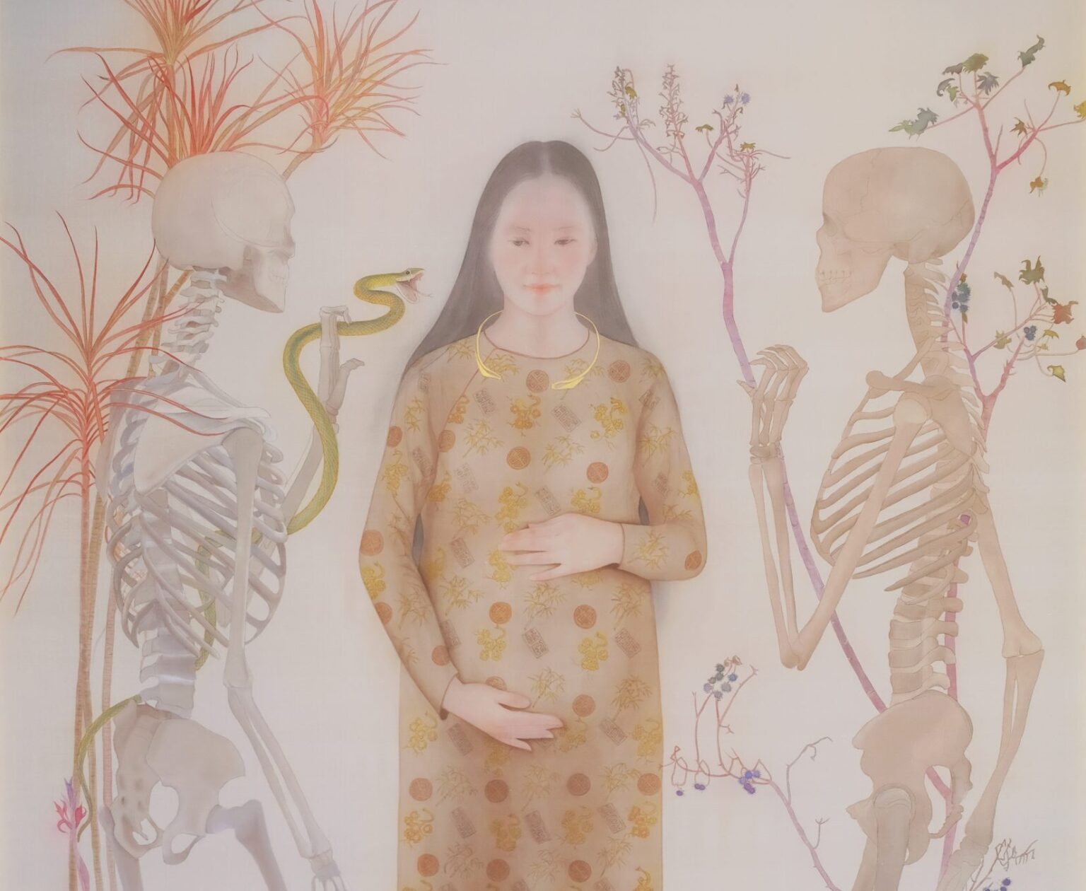 Bùi Công Khánh chồng chất những trăn trở với xã hội vào men gốm Bát Tràng; Lê Thuý, Nguyễn Thị Châu Giang nâng niu quy luật sinh tử của phận người trên tranh lụa; Nguyễn Thúy Hằng phơi bày những ám ảnh cá nhân qua những câu chuyện hư cấu, được thể hiện bằng sơn dầu trên vải; Oanh Phi Phi, Hoàng Thanh Vĩnh Phong, khám phá và thử nghiệm các chiều kích khác của sơn mài; Richard Streitmatter-Tran tiếp tục “trình diễn” với cơ thể người, thông qua việc tôi luyện kỹ năng hình họa chân dung; Võ Trân Châu tái hình dung và chắp vá ký ức về lịch sử Đông Dương trên những tấm “mosaic” tái chế từ vải vụn.