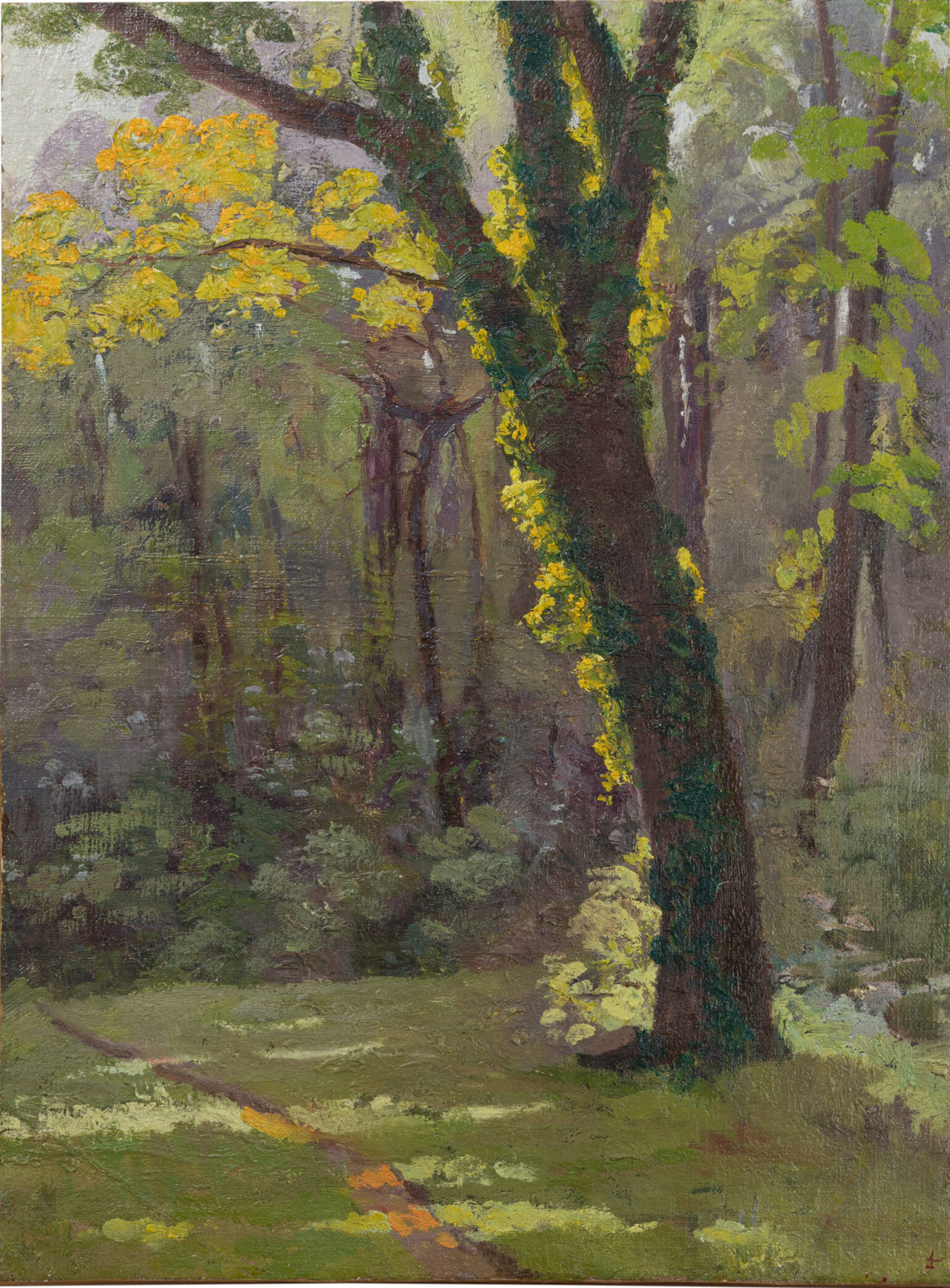 Vua Hàm Nghi, “Bên thềm rừng” (1910), sơn dầu trên toan, 36,5 x 27 cm.