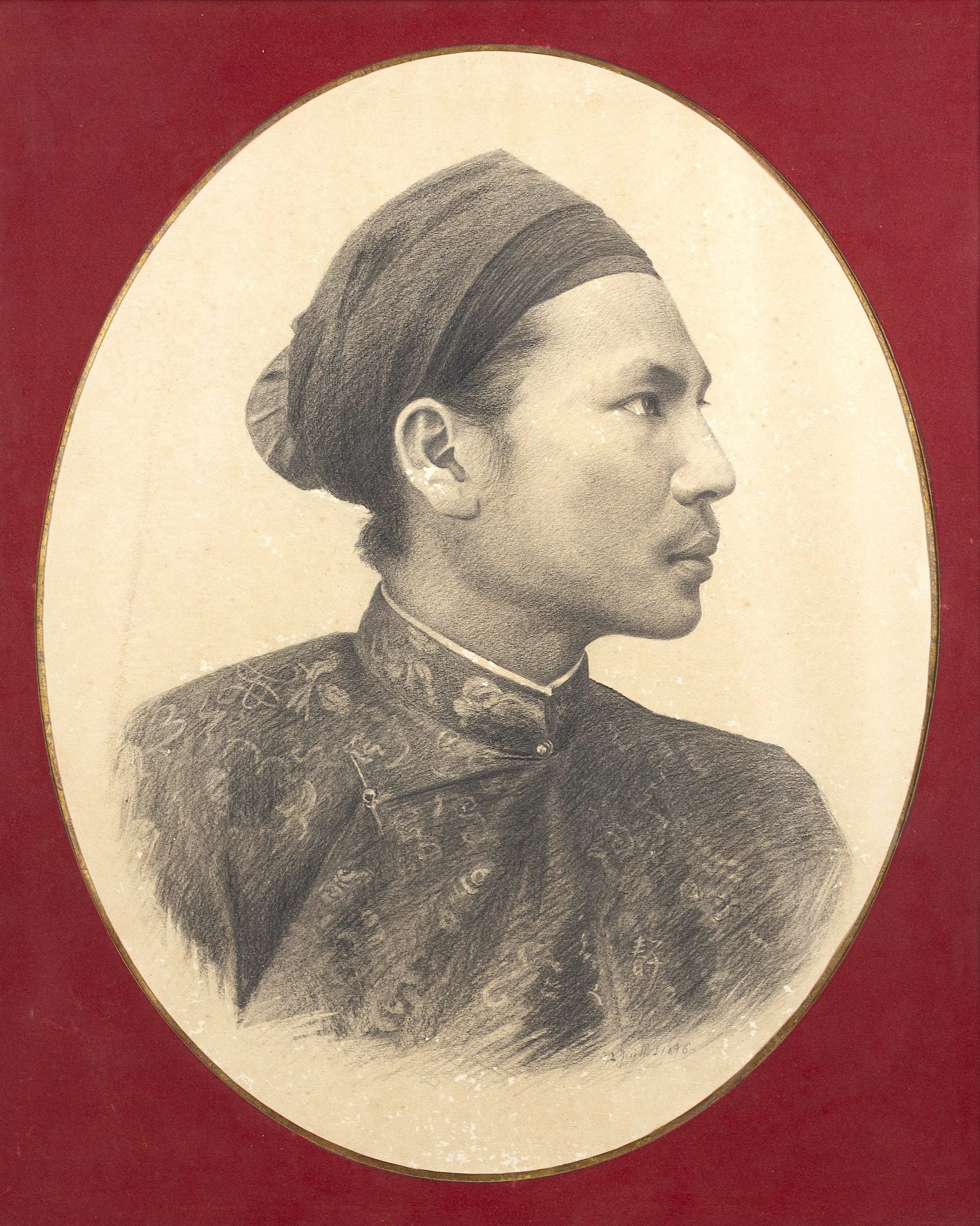 Chân dung tự họa của Vua Hàm Nghi (1896), than chì trên giấy, 54,5 x 43,5 cm. Bộ sưu tập tư nhân.